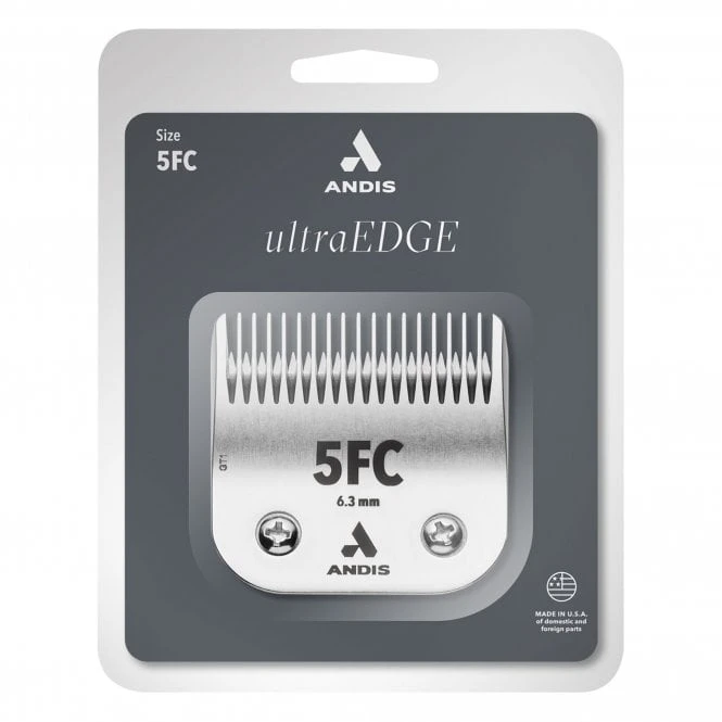The Andis #5FC UltraEdge Detachable Blade is made from carbon-infused steel to offer a harder cutting surface that stays sharper for longer. It also features a chrome coating to help rust resistance and for durability. This quality universal replacement blade will fit any Andis, Oster or Wahl clipper with a snap-on blade mechanism.