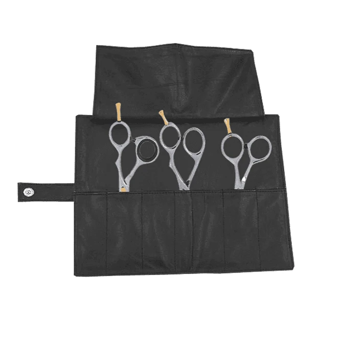 • Black leatherette wrap for safe storage of grooming scissors