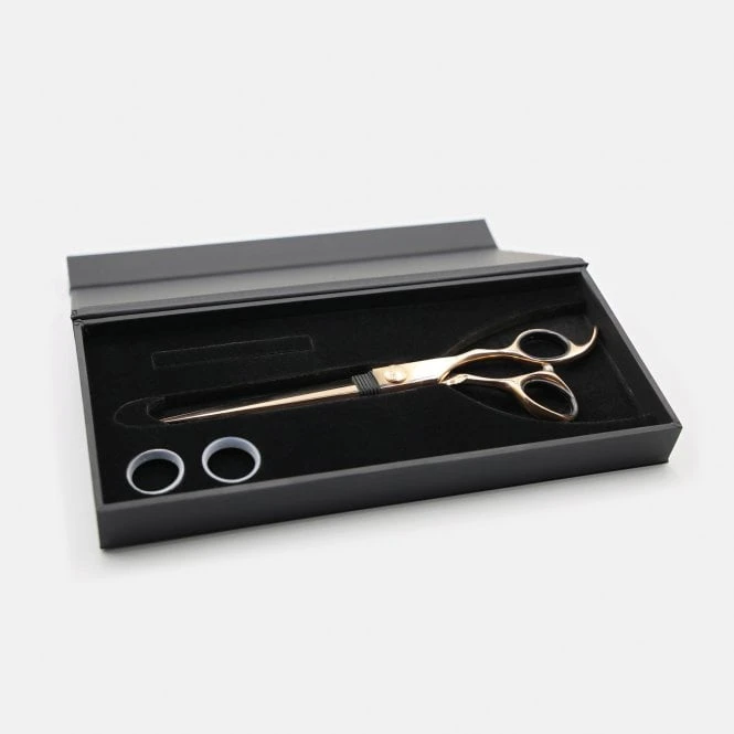 The Aurelia range is a gorgeously crafted collection of premium Rose Gold scissors, created from resilient Japanese stainless steel that offers sharp precision, sturdiness and professional grade performance, whilst remaining lightweight and easy to manoeuvre. These scissors also have increased blade durability and prolonged scissor working life. Specifically designed for experienced professional groomers, this collection offers maximum accuracy and control, aiding your grooms with effortless finesse and adding some class and splendour to your scissor collection. Engineered to last and work beautifully through heavy-duty cutting and professional everyday use.Â