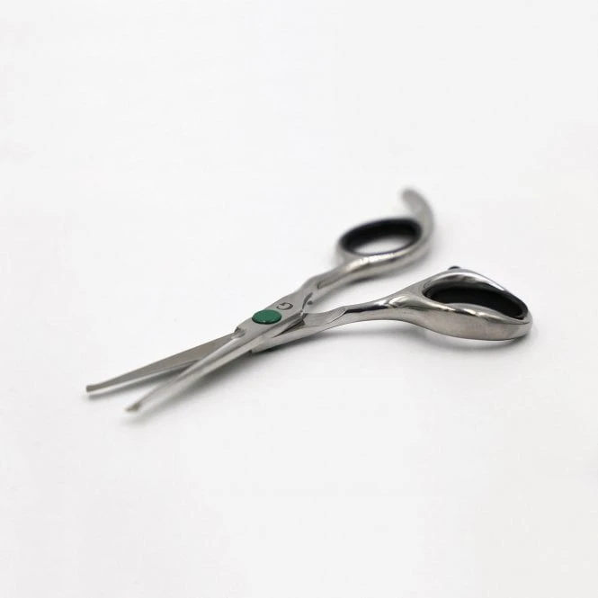 Made from recycled stainless steel, which is wear and abrasion resistant. The Groomers Simply G bull nosed scissor has a flat green ball bearing screw for adjustable tension. Tension key included.