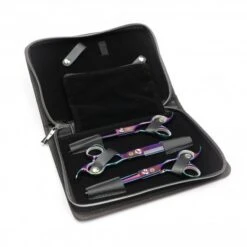 The Small Scissor Holster offers a simple way to store scissors close to hand while grooming. This leatherette pouch holds six scissors in individual pockets, and includes a quick-release adjustable strap. The holster features a closing flap that secures with Velcro.