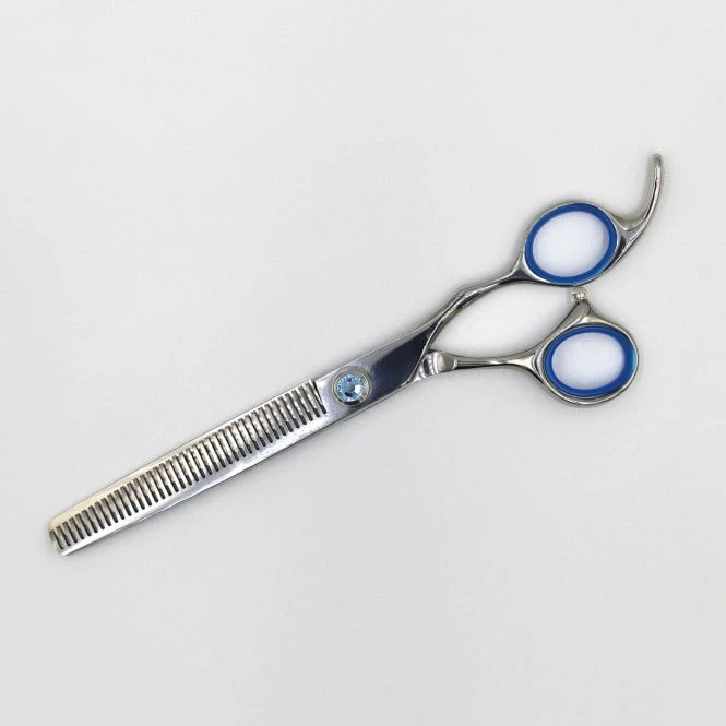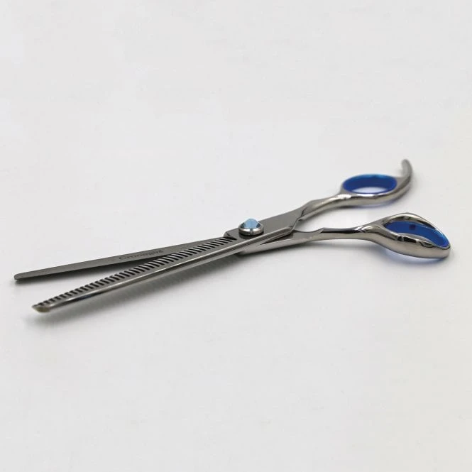 The Topaz range is a beautifully made collection of blue gemmed scissors, crafted from high quality, sturdy stainless steel that offers precision and excellent performance. Ideal for professional groomers wanting to add some class and dynamism to their scissor collection, these scissors are designed to last and work beautifully through heavy-duty cutting and professional everyday use.Â