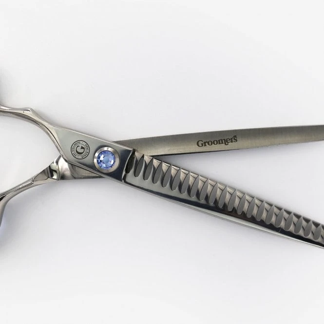 Our groomer recommends: Use chunkers on dogs with a thick, voluminous coat. They should always be used to cut the ends of the hair to add angulation and to finish by adding texture, don’t place deep in the coat as they will clog. They are delicate scissors so, don’t use too much pressure when scissoring as can they will lock.